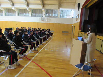 千中生たちは、真剣に田村さんのお話を聞いていました。
