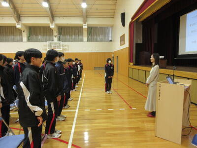 代議委員会の取組で、全学年が学校全体に響くような号令ができるよう、11月17日~21日までG1グランプリを開催しています。