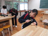 技術では、金槌、のこぎり、やすり…といろいろな道具を使います。ケガをしないように気をつけています!