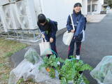 9年生のみんなは毎日、愛情いっぱいmy大根のお世話をがんばっています!