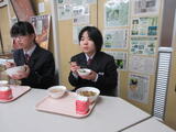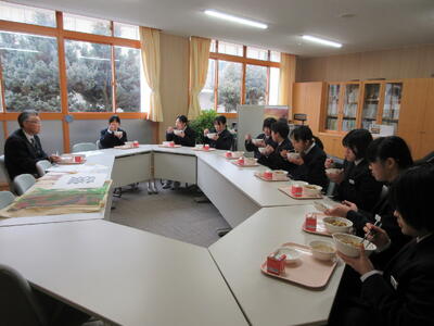 今日、9年生のみんなは校長先生と一緒に給食をいただきました!