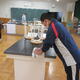 調理道具、食材の準備を班ごとで行い、先生から衛生面の注意をよく聞いて、実習スタート!