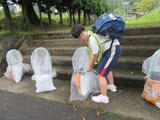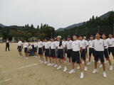 今日は主に、入場行進やラジオ体操を行いました。縦割り班ごとに並び方、位置など確認しました。