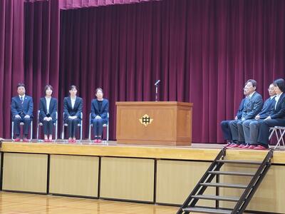 離任式では、8名の先生方とお別れをしました。授業で、部活動で、学校生活で・・・たくさんお世話になった先生方とのお別れは、とても寂しい気持ちでした。異動された先生方が残してくださった「みんなで力を合わせて、今以上に千種中をいい学校にしてください。」の言葉のとおり、千中家族、心を一つにしてがんばります。先生方もお元気で・・・。
