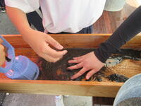 8年生は、今日採取した砂鉄で10月に「たたら製鉄」を体験します。