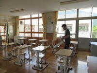夏休み中、計画的に職員作業を行っています。普段行き届かないところを掃除したり、生徒の机の点検を行ったり、ガタガタしている机の入れ替えを行いました。